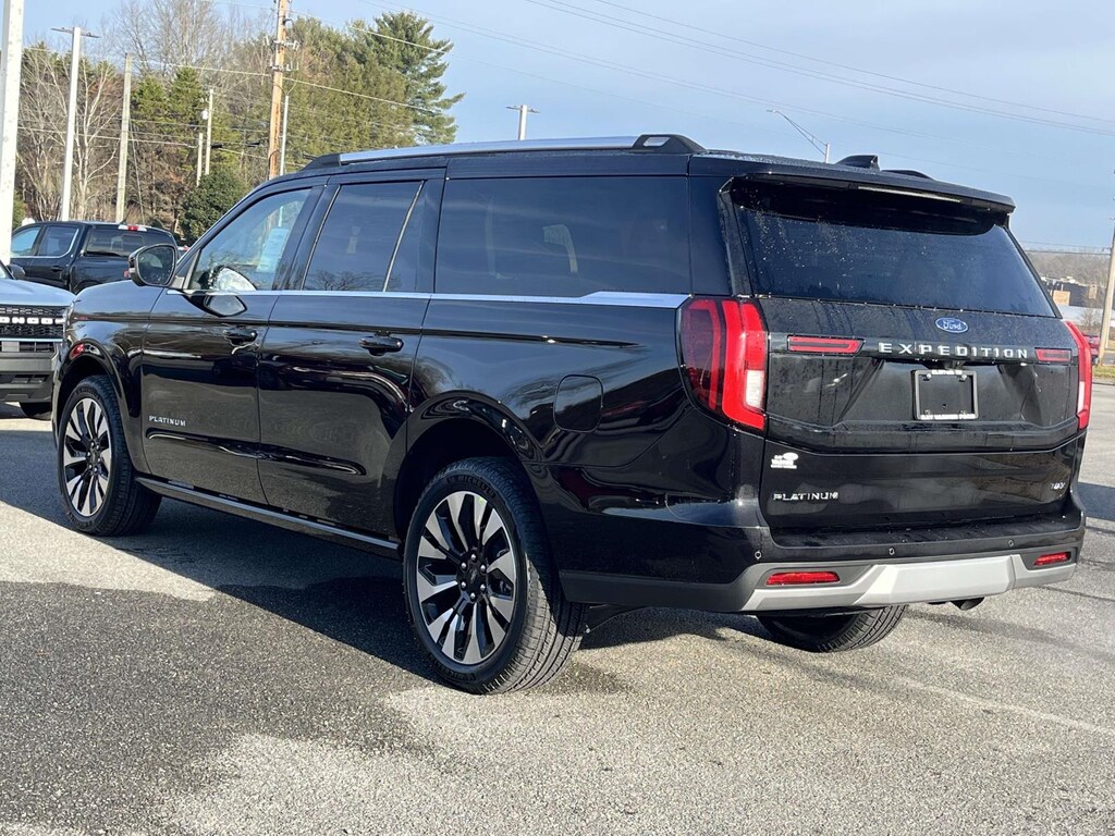 Agate Black Metallic 2025 Ford Expedition Max Platinum 4WD 10-Speed Automatic 3.5L V6 10 Speakers, 2nd Row Power-Folding Captain's Chairs, 3.73 Axle Ratio, 3rd row seats: split-bench, 4-Wheel Disc Brakes, ABS brakes, Adjustable pedals, Air Conditioning, Alloy wheels, AM/FM radio: SiriusXM with 360L, Apple CarPlay/Android Auto, Auto High-beam Headlights, Auto-dimming door mirrors, Auto-dimming Rear-View mirror, Automatic temperature control, Black Headlamp Bezel w/Satin Trim Applique, BlueCruise Equipped (1-Year Plan), Brake assist, Bumpers: body-color, Carbon Black Front Bumper w/Lit Grille Bar, Compass, Continuous Control Damping Suspension, Delay-off headlights, Driver door bin, Driver vanity mirror, Driver's Package, Dual front impact airbags, Dual front side impact airbags, Electronic Stability Control, Emergency communication system: 911 Assist, Engine Sound Enhancer, Equipment Group 600A Standard Package, Exterior Parking Camera Rear, Floor Liners, Front & Second Rows, Four wheel independent suspension, Front anti-roll bar, Front Bucket Seats, Front Center Armrest, Front Door Scuff Plates w/Met Insert & Bright Rear, Front dual zone A/C, Front License Plate Bracket, Front reading lights, Fully automatic headlights, Garage door transmitter, Genuine wood dashboard insert, Genuine wood door panel insert, Heated & Ventilated Leather Front Captain's Chairs, Heated door mirrors, Heated front seats, Heated rear seats, Heated steering wheel, High Flow Exhaust System, Illuminated entry, Leather steering wheel, Low tire pressure warning, Memory seat, Multicontour Active Motion Lthr Frnt Captains Chairs, Navigation System, Occupant sensing airbag, Outside temperature display, Overhead airbag, Overhead console, Panic alarm, Passenger door bin, Passenger vanity mirror, Pedal memory, Platinum Ultimate Interior Package, Platinum Ultimate Package, Polished Stainless Steel Beltline Molding, Power door mirrors, Power driver seat, Power moonroof: Vista Roof, Power passenger seat, Power steering, Power windows, Radio data system, Radio: B&O Sound System by Bang & Olufsen, Radio: B&O Unleashed Sound System by Bang & Olufsen, Rain sensing wipers, Rear air conditioning, Rear anti-roll bar, Rear reading lights, Rear Seat Radio Controls, Rear Side Windows Laminated Glass, Rear window defroster, Rear window wiper, Reclining 3rd row seat, Remote keyless entry, Satin Aluminum Expedition Lettering On Side & Hood, Satin Aluminum Platinum Badge On Tailgate, Security system, Signature Grille Lighting, SiriusXM w/360L, Speed control, Speed-sensing steering, Speed-Sensitive Wipers, Split folding rear seat, Spoiler, Steering wheel memory, Steering wheel mounted audio controls, Tachometer, Telescoping steering wheel, Tilt steering wheel, Traction control, Trip computer, Turn signal indicator mirrors, Variably intermittent wipers, Ventilated front seats, Voltmeter, Wheels: 20' Ebony Bright Machined Aluminum, Wheels: 22' Ebony Bright Machined Face Aluminum.<br><br>Recent Arrival!