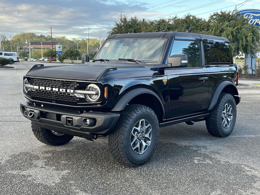 Shadow Black 2025 Ford Bronco Badlands 4WD 10-Speed Automatic 2.3L EcoBoost I-4 2-Door Intelligent Access w/Lock/Unlock, 360-Degree Camera, 4-Wheel Disc Brakes, 4.7 Axle Ratio, 7 Speakers, ABS brakes, Adaptive Cruise Control, Air Conditioning, Alloy wheels, AM/FM radio: SiriusXM with 360L, AM/FM Stereo, Ambient Footwell Lighting, Auto High-Beam Headlamps, Auto High-beam Headlights, Auto-dimming Rear-View mirror, Black Appearance Package, Black Molded-In-Color Door Handles, Black Molded-In-Color Fender Flares, Black Molded-In-Color Sideview Mirror Caps, Black-Painted Molded-In-Color Grille, BLIS Blind Spot Information System, Brake assist, Compass, Connected Navigation, Convertible HardTop, Convertible roof lining, Delay-off headlights, Dr & Pass Illuminated Sliding Visor Vanity Mirrors, Driver door bin, Driver vanity mirror, Dual front impact airbags, Dual front side impact airbags, Dual Smart Charging USB Ports, Dual-Zone Electronic Automatic Temperature Control, Electronic Stability Control, Emergency communication system: 911 Assist, Equipment Group 334A Lux Package, Evasive Steering Assist, Exterior Parking Camera Rear, Front & Rear Floor Liners w/o Carpet Floor Mats, Front anti-roll bar, Front Bucket Seats, Front Center Armrest, Front fog lights, Front License Plate Bracket, Front Parking Sensors, Front reading lights, Front Row Heated Seats, Front wheel independent suspension, Fully automatic headlights, Glass rear window, Hard Top Sound Deadening Headliner, Heated door mirrors, Heated steering wheel, Illuminated entry, Information on Demand Panel, Integrated roll-over protection, Lane-Keeping System, Leather Shift Knob, Low tire pressure warning, Marine Grade Vinyl Heated Bucket Seats, Occupant sensing airbag, Outside temperature display, Overhead airbag, Overhead console, Panic alarm, Passenger door bin, Passenger vanity mirror, Power door mirrors, Power Outlet - Back Side of Center Floor Console, Power steering, Power windows, Pre-Collision Assist w/Automatic Emergency Braking, Radio data system, Radio: B&O Sound System by Bang & Olufsen, Rear Parking Sensors, Rear window defroster, Rear window wiper, Rear-View Camera, Rear-Window Defroster & Washer, Remote keyless entry, Security system, Shadow Black-Painted Hard Top, Sideview Mirrors, SiriusXM w/360L, Speed control, Split folding rear seat, Steering wheel mounted audio controls, SYNC 4, Tachometer, Telescoping steering wheel, Tilt steering wheel, Traction control, Trip computer, Universal Garage Door Opener, Variably intermittent wipers, Voltmeter, Wheels: 17' Carbonized Gray-Painted Aluminum.<br><br>Recent Arrival! Not all customers qualify for all rebates. See dealer for details.$1500 - Retail Bonus Cash. Exp. 09/30/2025