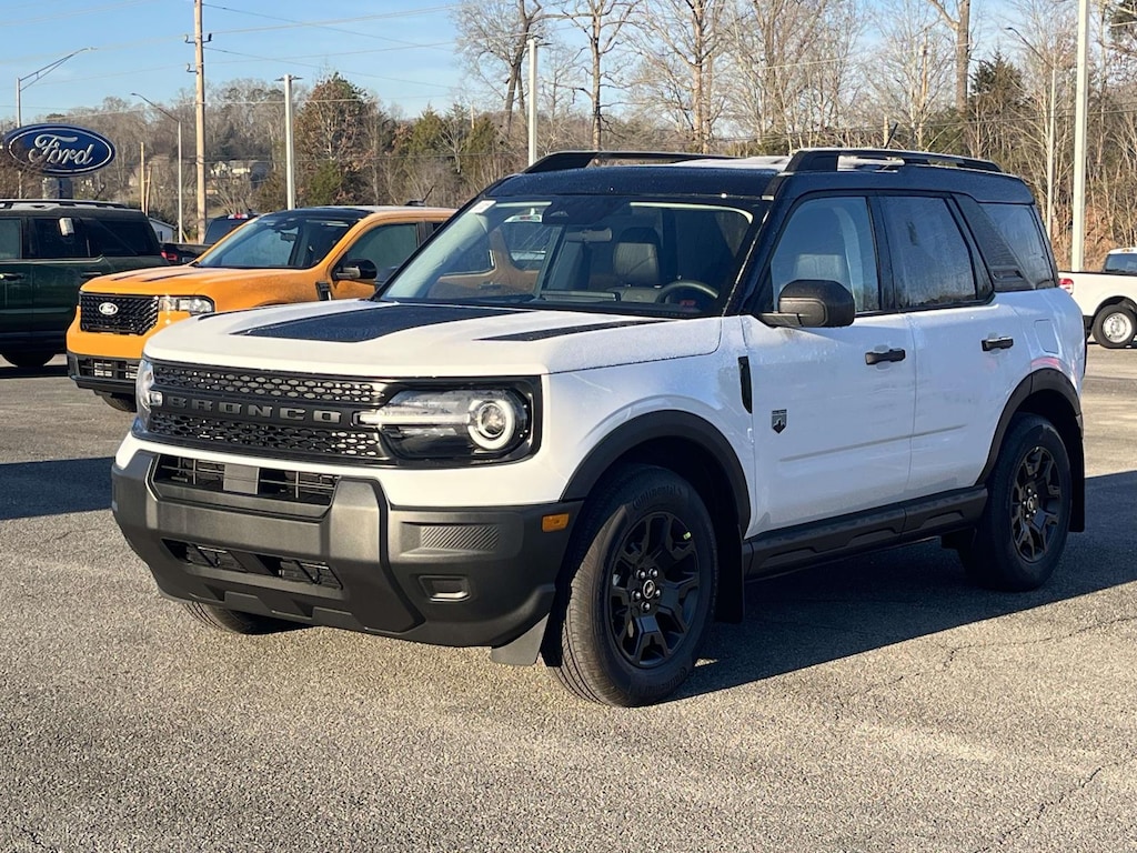 Oxford White 2025 Ford Bronco Sport Big Bend 4WD 8-Speed Automatic 1.5L EcoBoost 2nd Row Carpeted Seatback, 4-Wheel Disc Brakes, 6 Speakers, ABS brakes, Air Conditioning, Alloy wheels, AM/FM radio: SiriusXM, AM/FM Stereo, Auto High-beam Headlights, Automatic temperature control, Black Appearance Package, Brake assist, Carbon Black Grille w/Black BRONCO Lettering, Cargo Mat, Cloth w/Easy-to-Clean Front Bucket Seats, Compass, Delay-off headlights, Driver door bin, Driver vanity mirror, Dual front impact airbags, Dual front side impact airbags, Electronic Stability Control, Emergency communication system: SYNC 4 911 Assist, Equipment Group 200A, Four wheel independent suspension, Front & Rear Floor Liners w/o Carpet Mats, Front & Rear Splash Guards, Front anti-roll bar, Front Bucket Seats, Front Center Armrest, Front Driver/Passenger Seat Back Map Pockets, Front License Plate Bracket, Front reading lights, Fully automatic headlights, Heated door mirrors, Illuminated entry, Knee airbag, Liftgate w/Black BRONCO SPORT Lettering, Low tire pressure warning, Occupant sensing airbag, Outside temperature display, Overhead airbag, Overhead console, Painted Shadow Black Roof, Panic alarm, Passenger door bin, Passenger vanity mirror, Power door mirrors, Power steering, Power windows, Premium Trimmed Htd Fr Sport Contour Bucket Seats, Radio data system, Rear anti-roll bar, Rear Parking Sensors, Rear reading lights, Rear seat center armrest, Rear window defroster, Rear window wiper, Remote keyless entry, Security system, SiriusXM, Speed control, Speed-sensing steering, Speed-Sensitive Wipers, Split folding rear seat, Steering wheel mounted audio controls, SYNC 4 w/Enhanced Voice Recognition, Tachometer, Telescoping steering wheel, Tilt steering wheel, Traction control, Trip computer, Variably intermittent wipers, Wheels: 17' Carbonized Gray-Painted Aluminum, Wheels: 17' Matte Black-Painted Aluminum.<br><br>Recent Arrival! 25/30 City/Highway MPG Not all customers qualify for all rebates. See dealer for details.$1500 - Retail Bonus Cash. Exp. 01/05/2026