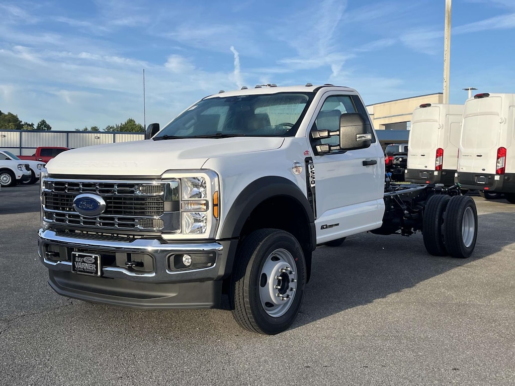 Oxford White 2025 Ford F-550SD XL DRW 4WD 10-Speed Automatic Power Stroke 6.7L V8 DI 32V OHV Turbodiesel 4WD, 190 Amp Alternator, 350 Amp Dual Alternators, 4 Speakers, 4-Wheel Disc Brakes, 4.88 Axle Ratio, ABS brakes, Air Conditioning, AM/FM radio, AM/FM Stereo w/MP3 Player, Automated Emergency Braking (AEB) Removal, Brake assist, Bright Grille, Chrome Front Bumper, Compass, Delay-off headlights, Dual 68 AH/65 AGM Battery, Dual front impact airbags, Dual front side impact airbags, Dual rear wheels, Emergency communication system: SYNC 4 911 Assist, Engine Block Heater, Exterior Backup Alarm (Pre-Installed), Front anti-roll bar, Front Center Armrest w/Storage, Front License Plate Bracket, Front reading lights, Fully automatic headlights, GVWR: 18,000 lbs Payload Package, Halogen Fog Lamps, HD Vinyl 40/20/40 Split Bench Seat, Heated door mirrors, Illuminated entry, Interior Work Surface, Limited Slip w/4.10 Axle Ratio, Order Code 660A, Outside temperature display, Overhead airbag, Overhead console, Panic alarm, Passenger cancellable airbag, Passenger vanity mirror, Power door mirrors, Power steering, Power windows, Rear anti-roll bar, Remote keyless entry, Remote Start, Security system, Snow Plow Prep Package, Speed control, Steering wheel mounted audio controls, SYNC 4 Communication & Entertainment System, Tachometer, Telescoping steering wheel, Tilt steering wheel, Traction control, Trailer Brake Controller, Trip computer, Turn signal indicator mirrors, Variably intermittent wipers, Wheels: 19.5' x 6' Argent Painted Steel, XL Chrome Package, 4WD.<br><br>Recent Arrival!