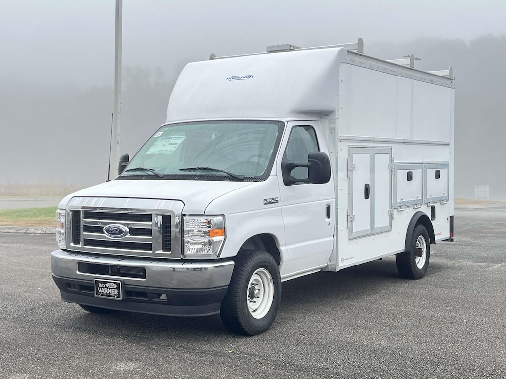 Oxford White 2025 Ford E-350SD Cutaway RWD 6-Speed Automatic with Overdrive 7.3L V8 110V Power Inverter, 2 Speakers, 4-Wheel Disc Brakes, 4.10 Axle Ratio, ABS brakes, Air Conditioning, AM/FM radio, Chrome Grille, Cruise Control, Driver door bin, Driver's Seat Mounted Armrest, Dual front impact airbags, Dual High Back Buckets, Electronic Stability Control, Front anti-roll bar, Front Bucket Seats, Front Chrome Bumper, Front wheel independent suspension, Fully automatic headlights, High Series Exterior Upgrade Package, License Plate Bracket, Order Code 780A, Passenger door bin, Passenger seat mounted armrest, Power Equipment Group, Power steering, Radio: AM/FM Stereo w/Clock Display & 2 Speakers, Remote Keyless Entry, Tachometer, Telescoping steering wheel, Tilt steering wheel, Traction control, Variably intermittent wipers, Vinyl Bucket Seats, Vinyl Floor Covering, Voltmeter.<br><br>Recent Arrival!