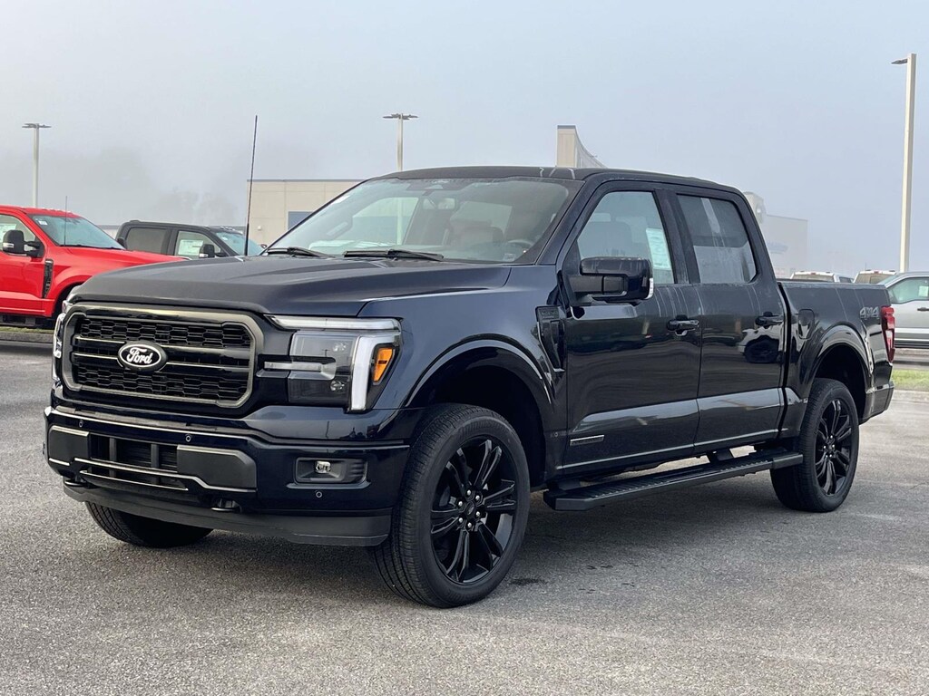 Antimatter Blue Metallic 2025 Ford F-150 Lariat 4WD 10-Speed Automatic 3.5L PowerBoost Full-Hybrid V6 3.5L PowerBoost Full-Hybrid V6, 4WD, 4 Pickup Box Tie-Down Plates, 4-Wheel Disc Brakes, 6' Extended Running Boards, 8 Speakers, ABS brakes, ActiveX Trimmed Bucket Seats, Adjustable pedals, Air Conditioning, Alloy wheels, AM/FM radio: SiriusXM with 360L, Auto High-beam Headlights, Auto-dimming door mirrors, Auto-dimming Rear-View mirror, Automatic temperature control, Bed Utility Package, Brake assist, Bumpers: chrome, Chrome wheels, Compass, Delay-off headlights, Driver door bin, Driver vanity mirror, Dual front impact airbags, Dual front side impact airbags, Electronic Stability Control, Emergency communication system: SYNC 4 911 Assist, Equipment Group 502A High, Front anti-roll bar, Front Bucket Seats, Front Center Armrest, Front dual zone A/C, Front fog lights, Front License Plate Bracket, Front reading lights, Front wheel independent suspension, Fully automatic headlights, Garage door transmitter, Heated door mirrors, Heated front seats, Heated steering wheel, Illuminated entry, LED Box Lighting, Low tire pressure warning, Memory seat, Navigation system: Connected Navigation, Occupant sensing airbag, Outside temperature display, Overhead airbag, Overhead console, Panic alarm, Passenger door bin, Passenger vanity mirror, Pedal memory, Power door mirrors, Power driver seat, Power passenger seat, Power steering, Power Tailgate, Power windows, Pro Access Tailgate, Radio data system, Radio: B&O Sound System by Bang & Olufsen, Rain sensing wipers, Rear reading lights, Rear seat center armrest, Rear step bumper, Rear window defroster, Remote keyless entry, Security system, Speed control, Split folding rear seat, Steering wheel mounted audio controls, SYNC 4 w/Enhanced Voice Recognition, Tachometer, Telescoping steering wheel, Tilt steering wheel, Tow/Haul Package, Traction control, Trip computer, Turn signal indicator mirrors, Twin Panel Moonroof, Variably intermittent wipers, Ventilated front seats, Voltmeter, Wheel Well Liner, Wheels: 18' Chrome-Like PVD, Wheels: 20' Chrome-Like PVD, Wheels: 22' Gloss Black w/o Inserts, 3.5L PowerBoost Full-Hybrid V6, 4WD.<br><br>Recent Arrival!