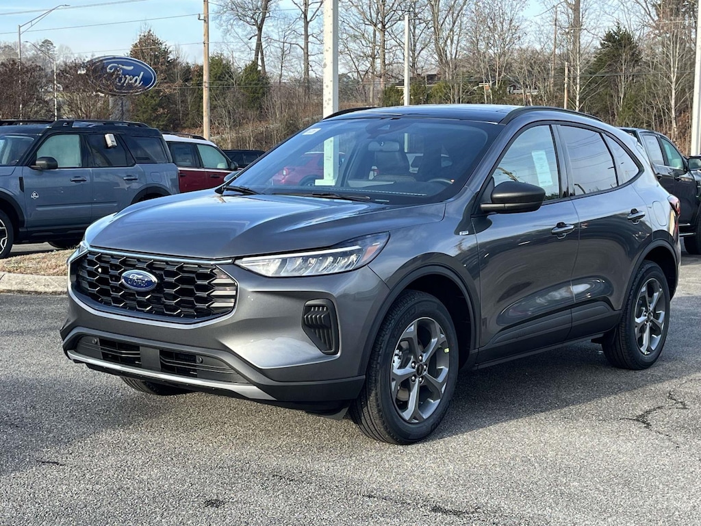 carbonized gray metallic 2026 Ford Escape ST-Line AWD 8-Speed Automatic 1.5L EcoBoost AWD, 3.81 Axle Ratio, 4-Way Manual Front Passenger Seat, 4-Wheel Disc Brakes, 6 Speakers, 8-Way Power Driver Seat, ABS brakes, Adaptive Cruise Control with Stop-and-Go, Air Conditioning, Alloy wheels, AM/FM radio: SiriusXM 360L, Auto High-beam Headlights, Automatic temperature control, Black Roof-Rack Side Rails, Brake assist, Bumpers: body-color, Cold Weather Package, Compass, Connected Navigation (1-Year Included), Delay-off headlights, Digital Rear View Camera, Driver door bin, Driver vanity mirror, Dual front impact airbags, Dual front side impact airbags, Electronic Stability Control, Emergency communication system: SYNC 4 911 Assist, Equipment Group 300A, Evasive Steering Assist, Ford App, Ford Co-Pilot360 Assist+, Four wheel independent suspension, Front anti-roll bar, Front Bucket Seats, Front Center Armrest, Front dual zone A/C, Front License Plate Bracket, Front reading lights, Fully automatic headlights, Heated Front Row Seats, Heated Sideview Mirrors, Heated Steering Wheel, Heated steering wheel, Illuminated entry, Intersection Assist, Knee airbag, Low tire pressure warning, Occupant sensing airbag, Outside temperature display, Overhead airbag, Overhead console, Panic alarm, Panoramic Vista Roof, Partial Vinyl/Cloth Front Sport Contour Bucket Seats with Red Stitching, Passenger door bin, Passenger vanity mirror, Power door mirrors, Power driver seat, Power Liftgate, Power steering, Power windows, Predictive Speed Assist, Radio data system, Radio: AM/FM Stereo with SiriusXM 360L, Rear anti-roll bar, Rear Parking Sensor, Rear reading lights, Rear seat center armrest, Rear window defroster, Rear window wiper, Remote keyless entry, Remote Starter System, Speed control, Speed-sensing steering, Speed-Sensitive Wipers, Split folding rear seat, Spoiler, Sport steering wheel, Steering wheel mounted audio controls, SYNC 4, SYNC 4 with Enhanced Voice Recognition, Tachometer, Tech Pack #1, Telescoping steering wheel, Tilt steering wheel, Traction control, Trip computer, Variably intermittent wipers, Wheels: 18' Rock Metallic Painted Aluminum, AWD.<br><br>Recent Arrival! 26/32 City/Highway MPG Not all customers qualify for all rebates. See dealer for details.$2000 - Bonus Customer Cash. Exp. 01/05/2026