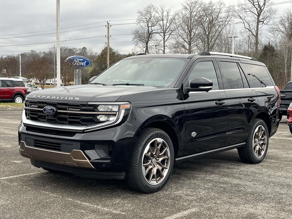 Agate Black Metallic 2026 Ford Expedition King Ranch 4WD 10-Speed Automatic EcoBoost 3.5L V6 GTDi DOHC 24V Twin Turbocharged 4WD, 22 Speakers, 3.73 Axle Ratio, 3rd row seats: split-bench, 4-Wheel Disc Brakes, ABS brakes, Adaptive suspension, Adjustable pedals, Air Conditioning, Alloy wheels, AM/FM radio: SiriusXM with 360L, Apple CarPlay/Android Auto, Auto High-beam Headlights, Auto-dimming door mirrors, Auto-dimming Rear-View mirror, Automatic temperature control, Brake assist, Bumpers: body-color, Compass, Delay-off headlights, Digital Device Holder, Driver door bin, Driver vanity mirror, Dual front impact airbags, Dual front side impact airbags, Electronic Stability Control, Emergency communication system: 911 Assist, Equipment Group 400A, Exterior Parking Camera Rear, Ford Connectivity Package (1-Year Included), Ford Digital Experience, Four wheel independent suspension, Front and 2nd Rows Floor Liners Without Carper Mats, Front anti-roll bar, Front Bucket Seats, Front Center Armrest, Front dual zone A/C, Front License Plate Bracket, Front reading lights, Fully automatic headlights, Garage door transmitter, Genuine wood dashboard insert, Genuine wood door panel insert, Heated door mirrors, Heated front seats, Heated rear seats, Heated steering wheel, Heated/Ventilated Premium Del Rio Leather Front Captain's Chairs, Illuminated entry, Leather steering wheel, Low tire pressure warning, Memory seat, Navigation System, Occupant sensing airbag, Outside temperature display, Overhead airbag, Overhead console, Panic alarm, Passenger door bin, Passenger vanity mirror, Pedal memory, Power door mirrors, Power driver seat, Power moonroof: Vista Roof, Power passenger seat, Power steering, Power windows, Radio data system, Radio: B&O Unleashed Sound System by Bang & Olufsen, Rain sensing wipers, Rear air conditioning, Rear anti-roll bar, Rear reading lights, Rear window defroster, Rear window wiper, Reclining 3rd row seat, Remote keyless entry, Security system, SiriusXM with 360L, Speed control, Speed-sensing steering, Speed-Sensitive Wipers, Split folding rear seat, Spoiler, Steering wheel memory, Steering wheel mounted audio controls, Tachometer, Telescoping steering wheel, Tilt steering wheel, Traction control, Trip computer, Turn signal indicator mirrors, Variably intermittent wipers, Ventilated front seats, Voltmeter, Wheels: 22' x 9.0' Diamond Cut Machined Face Aluminum, 4WD.<br><br>Recent Arrival!