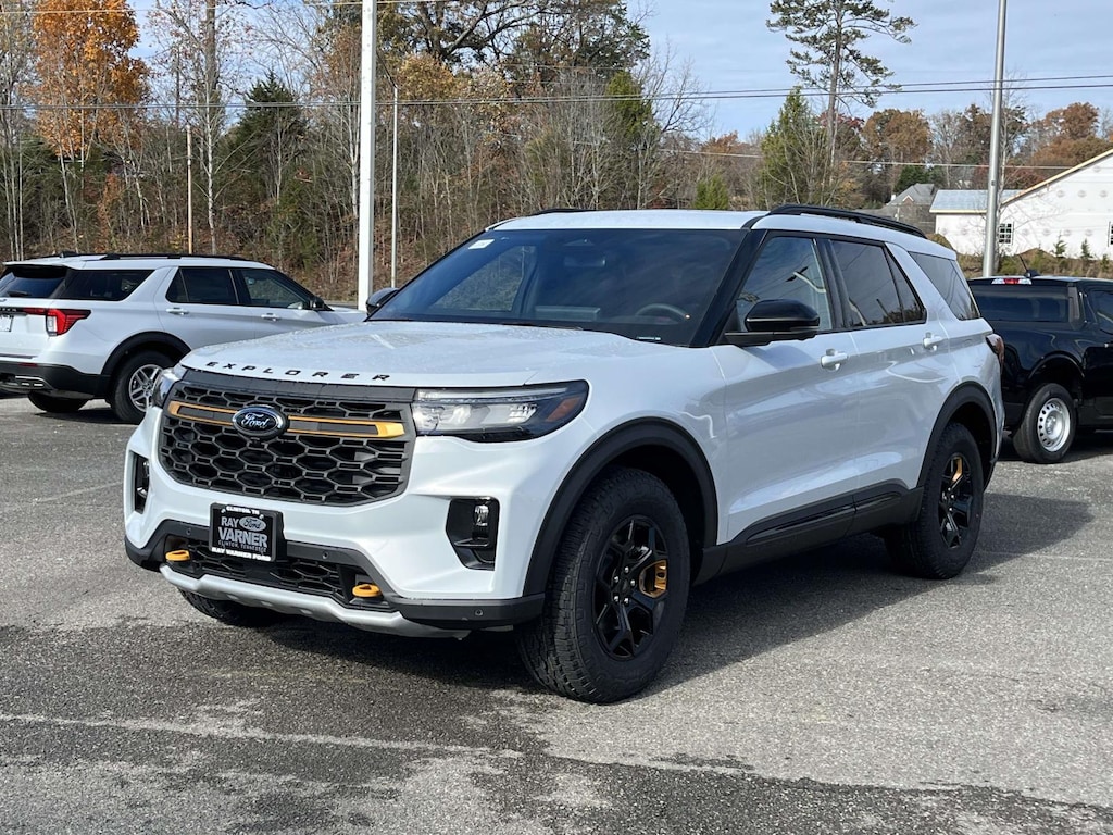 Space White Metallic 2026 Ford Explorer 4WD 10-Speed Automatic 3.0L EcoBoost V6 4WD, 10 Speakers, 3rd Row PowerFold Seats, 3rd row seats: bench, 4-Wheel Disc Brakes, ABS brakes, Air Conditioning, Alloy wheels, AM/FM radio: SiriusXM with 360L, Ambient Lighting, Apple CarPlay/Android Auto, Auto High-beam Headlights, Automatic temperature control, BlueCruise (Equipment + 1-Year + 90-Day Plan), BlueCruise Hardware, Brake assist, Bumpers: body-color, Compass, Delay-off headlights, Driver door bin, Driver vanity mirror, Dual front impact airbags, Dual front side impact airbags, Electronic Stability Control, Emergency communication system: 911 Assist, Equipment Group 800A Standard Package, Exterior Parking Camera Rear, Four wheel independent suspension, Front anti-roll bar, Front Bucket Seats, Front Center Armrest, Front dual zone A/C, Front fog lights, Front License Plate Bracket, Front reading lights, Fully automatic headlights, Heated door mirrors, Heated front seats, Heated rear seats, Heated steering wheel, Heated/Ventilated Miko Captain's Chairs, Illuminated entry, Knee airbag, Leather steering wheel, Low tire pressure warning, Memory Driver's Seat, Multicontour Seats w/Front Active Motion, Navigation System, Occupant sensing airbag, Outside temperature display, Overhead airbag, Overhead console, Panic alarm, Panoramic Fixed Glass Roof w/Power Shade, Passenger door bin, Passenger vanity mirror, Power door mirrors, Power driver seat, Power Liftgate, Power passenger seat, Power steering, Power windows, Power-Folding w/Autofold Side Mirrors, Radio: B&O Sound System by Bang & Olufsen, Radio: B&O Sound System by Bang & Olufsen w/68U, Rain-Sensing Wipers (Front Only), Rear air conditioning, Rear anti-roll bar, Rear reading lights, Rear window defroster, Rear window wiper, Remote keyless entry, Security system, Speed control, Speed-sensing steering, Speed-Sensitive Wipers, Split folding rear seat, Spoiler, Sport steering wheel, Steering wheel mounted audio controls, Tachometer, Telescoping steering wheel, Tilt steering wheel, Traction control, Tremor Ultimate Package, Trip computer, Variably intermittent wipers, Ventilated front seats, Wheels: 18' High Gloss Black-Painted Aluminum, 4WD.<br><br>Recent Arrival!