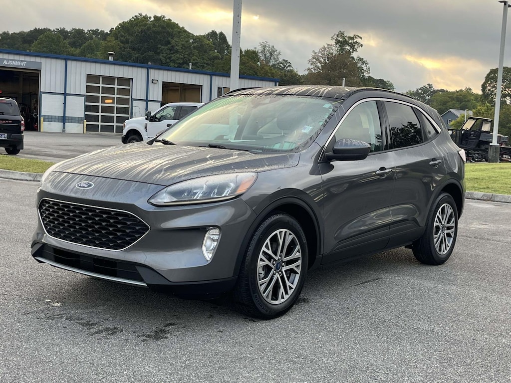Gray Metallic 2022 Ford Escape Hybrid SEL FWD eCVT 2.5L iVCT ***ACCIDENT FREE AUTOCHECK***, ***ONE OWNER***, 2.5L iVCT, 10-Way Power Driver's Seat, 18" Machined-Face Aluminum Wheels, 2.91 Axle Ratio, 4-Wheel Disc Brakes, 6 Speakers, ABS brakes, Air Conditioning, Alloy wheels, AM/FM radio: SiriusXM, AM/FM Stereo, Auto High-beam Headlights, Automatic temperature control, Black Roof-Rack Side Rails, Brake assist, Bumpers: body-color, Compass, Delay-off headlights, Driver door bin, Driver vanity mirror, Dual front impact airbags, Dual front side impact airbags, Electronic Fuel Door Release, Electronic Stability Control, Emergency communication system: SYNC 3 911 Assist, Equipment Group 303A, Exterior Parking Camera Rear, Ford Co-Pilot360 Assist+, FordPass Connect, Four wheel independent suspension, Front anti-roll bar, Front Bucket Seats, Front Center Armrest, Front dual zone A/C, Front fog lights, Front reading lights, Fully automatic headlights, Hands-Free Foot-Activated Liftgate, Heated ActiveX Trimmed Front Sport Contour Bucket Seats, Heated door mirrors, Heated front seats, Heated steering wheel, Illuminated entry, Instrument Panel w/6.5" Digital Screen, Intelligent Adaptive Cruise Control w/Stop-and-Go, Knee airbag, Low tire pressure warning, Memory Package, Neutral Towing Capability, Occupant sensing airbag, Outside temperature display, Overhead airbag, Overhead console, Panic alarm, Panoramic Vista Roof, Passenger door bin, Passenger vanity mirror, Pedestrian Alert Sounder, Power door mirrors, Power driver seat, Power Liftgate, Power steering, Power windows, Radio data system, Radio: B&O Sound System by Bang & Olufsen, Rear anti-roll bar, Rear reading lights, Rear seat center armrest, Rear window defroster, Rear window wiper, Remote keyless entry, Speed control, Speed Sign Recognition, Speed-sensing steering, Speed-Sensitive Wipers, Split folding rear seat, Spoiler, Steering wheel mounted audio controls, SYNC 3 Communications & Entertainment System, Technology Package, Telescoping steering wheel, Tilt steering wheel, Traction control, Trip computer, Variably intermittent wipers, Voice-Activated Touchscreen Navigation System, Wireless Charging Pad, 2.5L iVCT.