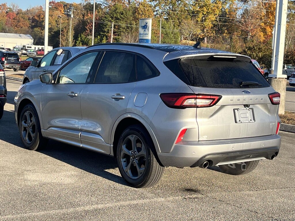 Iconic Silver Metallic 2023 Ford Escape ST-Line AWD 8-Speed Automatic 1.5L EcoBoost ***ONE OWNER***, AWD, 3.81 Axle Ratio, 4-Wheel Disc Brakes, 6 Speakers, ABS brakes, Air Conditioning, Alloy wheels, AM/FM radio: SiriusXM, AM/FM Stereo, Auto High-beam Headlights, Automatic temperature control, Black Roof-Rack Side Rails, Brake assist, Bumpers: body-color, Compass, Connected Built-In Navigation, Delay-off headlights, Driver door bin, Driver vanity mirror, Dual front impact airbags, Dual front side impact airbags, Electronic Stability Control, Emergency communication system: SYNC 4 911 Assist, Equipment Group 300A, Exterior Parking Camera Rear, Ford Co-Pilot360 Assist+, FordPass Connect, Four wheel independent suspension, Front anti-roll bar, Front Bucket Seats, Front Center Armrest, Front dual zone A/C, Front reading lights, Fully automatic headlights, Heated door mirrors, Heated front seats, Heated steering wheel, Illuminated entry, Intelligent Adaptive Cruise Control w/Stop-and-Go, Knee airbag, Low tire pressure warning, Occupant sensing airbag, Outside temperature display, Overhead airbag, Overhead console, Panic alarm, Panoramic Vista Roof, Passenger door bin, Passenger vanity mirror, Power door mirrors, Power driver seat, Power Liftgate, Power steering, Power windows, Radio data system, Rear anti-roll bar, Rear Parking Sensor, Rear reading lights, Rear seat center armrest, Rear window defroster, Rear window wiper, Rear-View Camera, Remote keyless entry, Speed control, Speed Sign Recognition, Speed-sensing steering, Speed-Sensitive Wipers, Split folding rear seat, Spoiler, Sport steering wheel, Steering wheel mounted audio controls, SYNC 4, SYNC 4 w/Enhanced Voice Recognition, Tachometer, Tech Pack #1, Telescoping steering wheel, Tilt steering wheel, Traction control, Trip computer, Variably intermittent wipers, Vinyl/Cloth Front Sport Contour Bucket Seats, Wheels: 18" Rock Metallic Painted Aluminum, AWD.