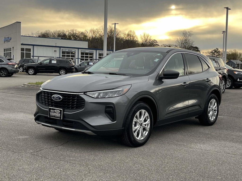 Gray Metallic 2024 Ford Escape Active FWD 8-Speed Automatic 1.5L EcoBoost ***ACCIDENT FREE AUTOCHECK***, ***LOCAL TRADE***, 3.81 Axle Ratio, 4-Wheel Disc Brakes, 6 Speakers, ABS brakes, Adaptive Cruise Control w/Stop-and-Go, Air Conditioning, Alloy wheels, AM/FM radio: SiriusXM, AM/FM Stereo, Auto High-beam Headlights, Automatic temperature control, Brake assist, Bumpers: body-color, Compass, Connected Navigation, Delay-off headlights, Driver door bin, Driver vanity mirror, Dual front impact airbags, Dual front side impact airbags, Electronic Stability Control, Emergency communication system: SYNC 4 911 Assist, Equipment Group 200A, Exterior Parking Camera Rear, First Aid Kit, Ford Co-Pilot360 Assist+, FordPass Connect, Four wheel independent suspension, Front anti-roll bar, Front Bucket Seats, Front Center Armrest, Front dual zone A/C, Front License Plate Bracket, Front reading lights, Fully automatic headlights, Illuminated entry, Knee airbag, Low tire pressure warning, Occupant sensing airbag, Outside temperature display, Overhead airbag, Overhead console, Panic alarm, Passenger door bin, Passenger vanity mirror, Power door mirrors, Power driver seat, Power Liftgate, Power steering, Power windows, Radio data system, Rear anti-roll bar, Rear Parking Sensor, Rear reading lights, Rear seat center armrest, Rear window defroster, Rear window wiper, Rear-View Camera, Remote keyless entry, Speed control, Speed Sign Recognition, Speed-sensing steering, Speed-Sensitive Wipers, Split folding rear seat, Spoiler, Steering wheel mounted audio controls, SYNC 4, SYNC 4 w/Enhanced Voice Recognition, Tachometer, Tech Pack #1, Telescoping steering wheel, Tilt steering wheel, Traction control, Trip computer, Unique Cloth Front Bucket Seats, Variably intermittent wipers, Wheels: 17" Shadow Silver-Painted Aluminum.