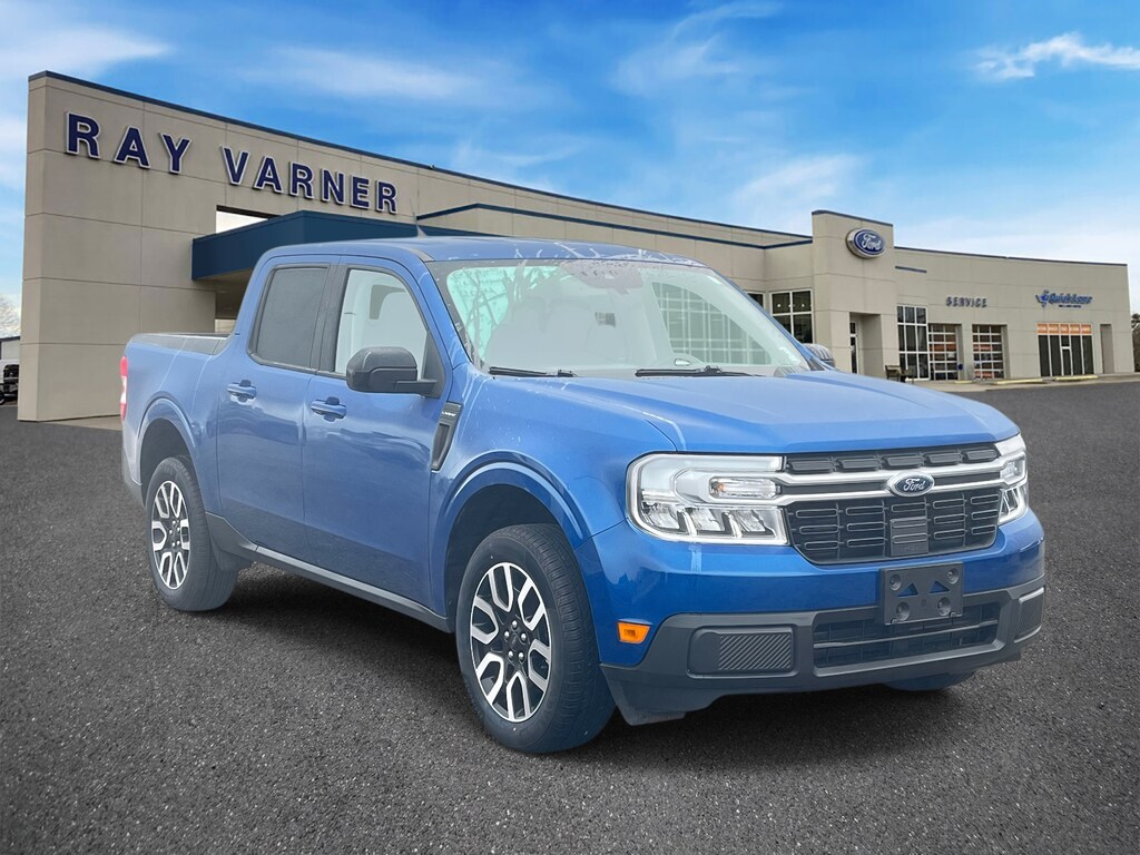 Blue Metallic 2024 Ford Maverick Lariat FWD CVT 2.5L I-4 Hybrid ***ACCIDENT FREE AUTOCHECK***, ***ONE OWNER***, 2.5L I-4 Hybrid, 2.91 Axle Ratio, 4-Wheel Disc Brakes, 8 Speakers, ABS brakes, ActiveX Trimmed Front Bucket Seats, Air Conditioning, Alloy wheels, AM/FM radio: SiriusXM, Auto High-beam Headlights, Automatic temperature control, Brake assist, Bumpers: body-color, Compass, Delay-off headlights, Driver door bin, Driver vanity mirror, Dual front impact airbags, Dual front side impact airbags, Electronic Stability Control, Emergency communication system: 911 Assist, Equipment Group 500A Standard, Exterior Parking Camera Rear, Front & Rear Floor Liners w/o Carpet Mats, Front anti-roll bar, Front Bucket Seats, Front Center Armrest, Front dual zone A/C, Front reading lights, Front wheel independent suspension, Fully automatic headlights, Heated door mirrors, Heated front seats, Heated steering wheel, Illuminated entry, Knee airbag, Low tire pressure warning, Navigation System, Occupant sensing airbag, Outside temperature display, Overhead airbag, Overhead console, Panic alarm, Passenger door bin, Passenger vanity mirror, Power door mirrors, Power driver seat, Power steering, Power windows, Radio data system, Radio: B&O Sound System by Bang & Olufsen, Rear anti-roll bar, Rear Parking Sensors, Rear seat center armrest, Rear step bumper, Remote keyless entry, Security system, SiriusXM Radio, Speed control, Speed-sensing steering, Steering wheel mounted audio controls, SYNC 3 Communications & Entertainment System, Telescoping steering wheel, Tilt steering wheel, Traction control, Trip computer, Wheels: 18" Machined-Face Bright Aluminum, 2.5L I-4 Hybrid.