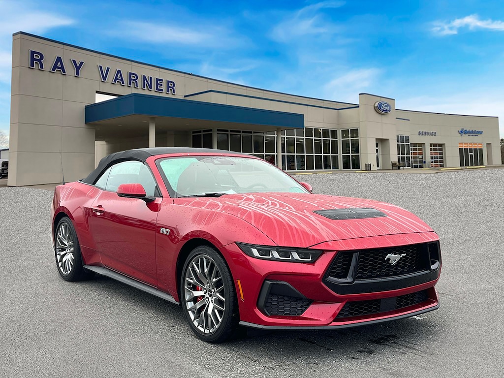 Rapid Red Metallic Tinted Clearcoat 2024 Ford Mustang GT Premium RWD 10-Speed Automatic 5.0L V8 Ti-VCT 19" Branded Brake System w/Performance Linings, 4-Wheel Disc Brakes, 9 Speakers, ABS brakes, Active Anti-Theft System, Air Conditioning, Alloy wheels, AM/FM radio: SiriusXM with 360L, AM/FM Stereo, Auto High-beam Headlights, Auto-dimming Rear-View mirror, Automatic temperature control, Brake assist, Bumpers: body-color, Climate Controlled Heated/Cooled Front Seats, Compass, Convertible roof lining, Delay-off headlights, Driver door bin, Driver vanity mirror, Dual front impact airbags, Dual front side impact airbags, Electronic Stability Control, Emergency communication system: 911 Assist, Equipment Group 401A High Package, Exterior Parking Camera Rear, Ford Co-Pilot360 Assist+, Four wheel independent suspension, Front anti-roll bar, Front Bucket Seats, Front Center Armrest, Front dual zone A/C, Front reading lights, Fully automatic headlights, Garage door transmitter, Glass rear window, HD Radio, Heated door mirrors, Heated front seats, Heated steering wheel, Illuminated entry, Knee airbag, Leather Shift Knob, Leather steering wheel, Leather-Trimmed Bucket Seats w/Color Accents, Locking Center Console, Low tire pressure warning, Occupant sensing airbag, Outside temperature display, Overhead console, Panic alarm, Passenger door bin, Passenger vanity mirror, Power convertible roof, Power door mirrors, Power driver seat, Power passenger seat, Power steering, Power windows, Radio data system, Rain sensing wipers, Rear anti-roll bar, Rear Parking Sensors, Rear window defroster, Red Painted Brake Calipers w/White Logo, Remote keyless entry, Security Package, Security system, SiriusXM w/360L, Speed control, Speed-sensing steering, Speed-Sensitive Wipers, Spoiler, Sport steering wheel, Steering wheel mounted audio controls, SYNC 4.0 QNX, Tachometer, Telescoping steering wheel, Tilt steering wheel, Traction control, Trip computer, Turn signal indicator mirrors, Variably intermittent wipers, Ventilated front seats, Voltmeter, Wheel Locking Kit, Wheels: 19" x 8.5" Shadow Silver-Painted Aluminum, Wheels: 20" x 9" Premium-Painted Aluminum.