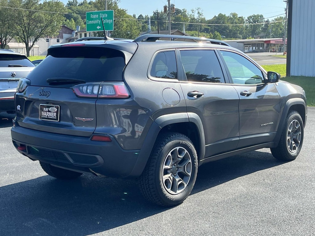Granite Crystal Metallic Clearcoat 2022 Jeep Cherokee Trailhawk 4WD 9-Speed 948TE Automatic 3.2L V6 ***ONE OWNER***, 1-Year SiriusXM Guardian Trial, 3.517 Final Drive Ratio, 4-Wheel Disc Brakes, 4G LTE Wi-Fi Hot Spot, 5-Year SiriusXM Traffic Service, 5-Year SiriusXM Travel Link Service, 6 Speakers, 8.4" Touchscreen Display, ABS brakes, Air Conditioning, Alloy wheels, AM/FM radio: SiriusXM, Anti-whiplash front head restraints, Apple CarPlay, Apple CarPlay/Android Auto, Auto-Dimming Rear-View Mirror, Automatic temperature control, Brake assist, Cloth/Premium Vinyl Bucket Seats, Comfort/Convenience Group, Compass, Delay-off headlights, Driver door bin, Driver vanity mirror, Dual front impact airbags, Dual front side impact airbags, Electronic Stability Control, For Details, Visit DriveUconnect.com, For More Info, Call 800-643-2112, Four wheel independent suspension, Front anti-roll bar, Front Bucket Seats, Front Center Armrest, Front dual zone A/C, Front fog lights, Front License Plate Bracket, Front reading lights, Fully automatic headlights, Google Android Auto, GPS Antenna Input, GPS Navigation, Hands-Free Power Liftgate, HD Radio, Heated door mirrors, Heated front seats, Heated steering wheel, Illuminated entry, Integrated Voice Command w/Bluetooth, K-Black Door Trim Panel Appliques, K-Black Interior Accents, Knee airbag, Leather Shift Knob, Low tire pressure warning, Occupant sensing airbag, Off Road Suspension, Off-Road Info Pages, Outside temperature display, Overhead airbag, Overhead console, Panic alarm, ParkView Rear Back-Up Camera, Passenger door bin, Passenger vanity mirror, Power door mirrors, Power driver seat, Power Front/Fixed Rear Full Sunroof, Power steering, Power windows, Premium Alpine Speaker System, Quick Order Package 27E, Radio data system, Radio: Uconnect 4 w/8.4" Display, Radio: Uconnect 4C Nav w/8.4" Display, Rain sensing wipers, Rear anti-roll bar, Rear reading lights, Rear seat center armrest, Rear side impact airbag, Rear window defroster, Rear window wiper, Remote keyless entry, Roof rack: rails only, Security Alarm, SiriusXM Radio Service, SiriusXM Satellite Radio, SiriusXM Traffic Plus, SiriusXM Travel Link, Speed control, Speed-sensing steering, Split folding rear seat, Spoiler, Steering wheel mounted audio controls, Sun, Sound & Nav Group (DISC), Tachometer, Telescoping steering wheel, Tilt steering wheel, Traction control, Trip computer, Turn signal indicator mirrors, Universal Garage Door Opener, USB Host Flip, Variably intermittent wipers, Voltmeter, Wheels: 17" x 7.5" Painted Diamond Cut Aluminum.