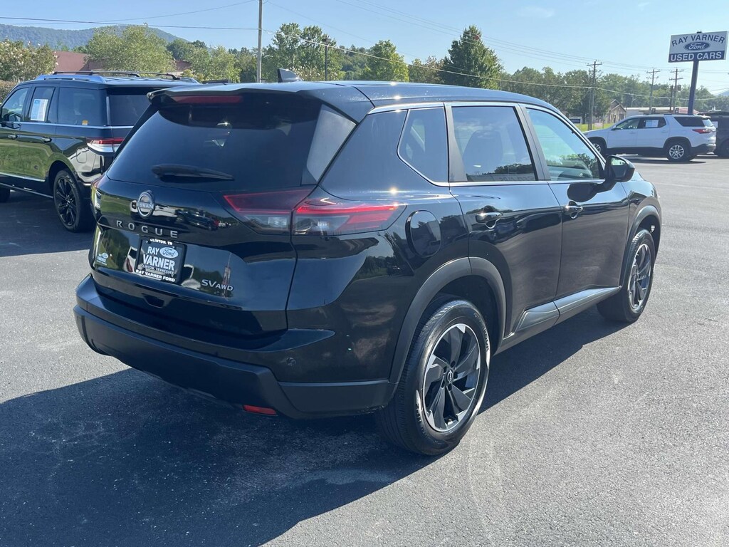 Super Black 2024 Nissan Rogue SV AWD CVT with Xtronic 1.5L DOHC ***ACCIDENT FREE AUTOCHECK***, ***ONE OWNER***, AWD, 4-Wheel Disc Brakes, 5.676 Axle Ratio, 6 Speakers, ABS brakes, Air Conditioning, Alloy wheels, AM/FM radio: SiriusXM, Auto High-beam Headlights, Automatic temperature control, Brake assist, Bumpers: body-color, Cloth Seat Trim w/Patterned Inserts, Delay-off headlights, Driver door bin, Driver vanity mirror, Dual front impact airbags, Dual front side impact airbags, Electronic Stability Control, Emergency communication system: NissanConnect Services, First Aid Kit, Floor Mats w/1-Piece Cargo Area Protector, Four wheel independent suspension, Front anti-roll bar, Front Bucket Seats, Front Center Armrest, Front dual zone A/C, Front reading lights, Fully automatic headlights, Heated door mirrors, Illuminated entry, Knee airbag, Low tire pressure warning, NissanConnect featuring Apple CarPlay and Android Auto, Occupant sensing airbag, Outside temperature display, Overhead airbag, Overhead console, Panic alarm, Passenger door bin, Passenger vanity mirror, Power door mirrors, Power driver seat, Power Liftgate, Power steering, Power windows, Radio data system, Radio: AM/FM NissanConnect, Rear anti-roll bar, Rear Parking Sensors, Rear seat center armrest, Rear side impact airbag, Rear window defroster, Rear window wiper, Remote keyless entry, Speed control, Speed-Sensitive Wipers, Split folding rear seat, Spoiler, Steering wheel mounted audio controls, Tachometer, Telescoping steering wheel, Tilt steering wheel, Traction control, Trip computer, Variably intermittent wipers, Wheels: 18" Dark Painted Machine Finished Alloy, AWD.