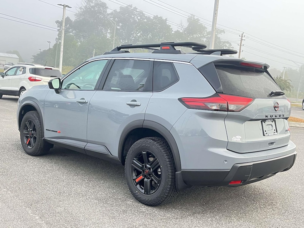 Boulder Gray Pearl 2025 Nissan Rogue Rock Creek AWD CVT with Xtronic 1.5L DOHC AWD, 4-Wheel Disc Brakes, 6 Speakers, ABS brakes, Air Conditioning, Alloy wheels, AM/FM radio: SiriusXM, Android Auto and Apple CarPlay, Auto High-beam Headlights, Automatic temperature control, Black Splash Guards (set of 4), Brake assist, Delay-off headlights, Driver door bin, Driver vanity mirror, Dual front impact airbags, Dual front side impact airbags, Electronic Stability Control, Emergency communication system: NissanConnect Services, Four wheel independent suspension, Front anti-roll bar, Front Bucket Seats, Front Center Armrest, Front dual zone A/C, Front reading lights, Fully automatic headlights, Heated door mirrors, Heated Front Bucket Seats with 8-Way Power Driver Seat, Heated front seats, Illuminated entry, Knee airbag, Leatherette and Ballistic Nylon Seating with Contrast Stich and Rock Creek Logo, Low tire pressure warning, Occupant sensing airbag, Outside temperature display, Overhead airbag, Overhead console, Panic alarm, Passenger door bin, Passenger vanity mirror, Power door mirrors, Power driver seat, Power Liftgate, Power steering, Power windows, Premium Paint, Radio data system, Radio: NissanConnect with 6 Speakers, Rear anti-roll bar, Rear seat center armrest, Rear side impact airbag, Rear window defroster, Rear window wiper, Remote keyless entry, Retractable Cargo Cover, Rock Creek All-Season 1-Piece Cargo Area Protector with Floor Liners, Roof rack, Speed control, Speed-sensing steering, Speed-Sensitive Wipers, Split folding rear seat, Spoiler, Steering wheel mounted audio controls, Tachometer, Telescoping steering wheel, Tilt steering wheel, Traction control, Trip computer, Variably intermittent wipers, Wheels: 17" Dark Painted Alloy, AWD.